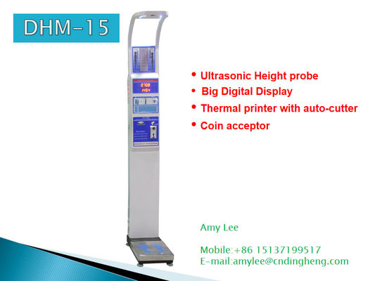 Dopo le monete dell'input, DHM-15 può misurare, esprimere la radiodiffusione e stampare automaticamente il peso di altezza e il BMI. Inoltre, questa macchina, fornita della ruota di campo e dell'interfaccia Rs232, può visualizzare e trasferire il risultato di misurazione al PC.